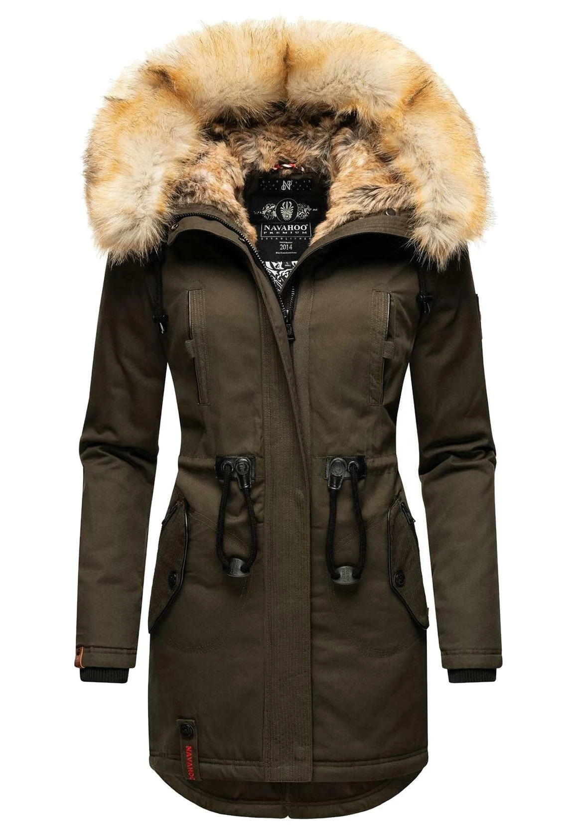 | Details capuchon | Tunnelkoord, gevoerd, afneembare imitatiebontkraag |